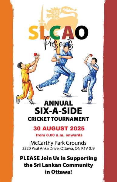 Get ready for an exciting day of cricket action! The Sri Lankan Canadian Association of Ottawa is thrilled to invite you to our annual tournament.